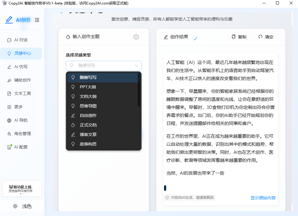 (一)Copy2AI智能创作助手:激发创意,提升创作效率